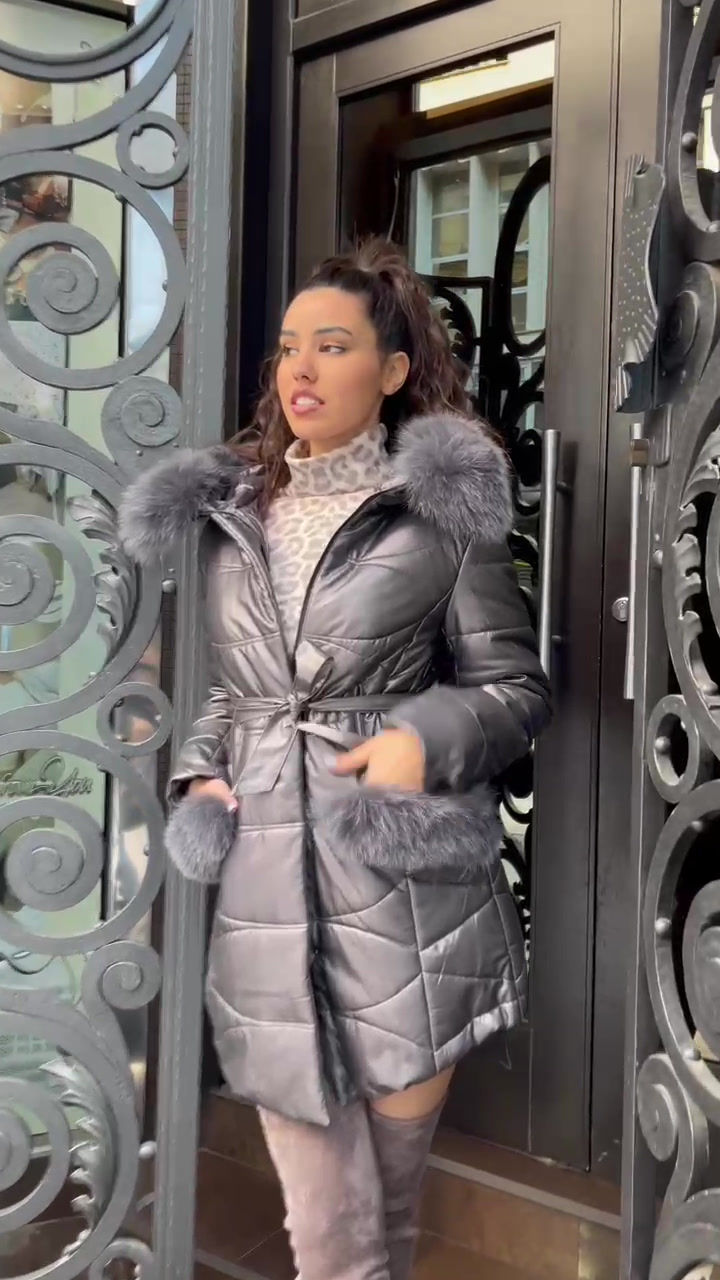 Crna dugacka jakna sa krznom